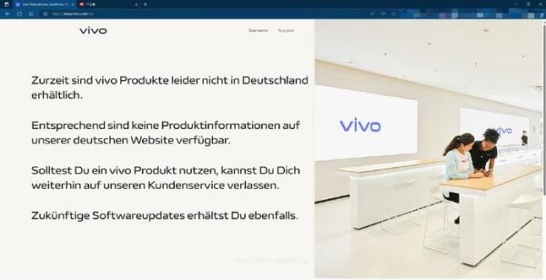 据外媒报道,vivo此前在德国官网宣布,暂时停止在德国市场销售一切产品,目前还没有恢复的具体日期。蓝厂此举是为了应对与诺基亚专利诉讼,由于败诉面临遭到德国禁售,只能提前做好暂停销售作为应对,而另一家国内大厂OPPO因为同样问题已经遭到禁售,甚至要退出欧洲市场。