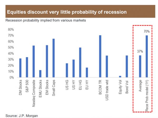 股票,债券和联储的看法彼此打架。各类资产定价的萧条概率失之千里。