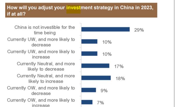 而且确实如这个调研所说,认为中国not investible的人很多很多。前两天也参加了Mining 121的会,实际上矿业是一个非常全球化的行业,前几年在贵州工作的美国工程师,这几年就可以提着一个包去非洲。所以理论上这些人不会有太多偏见。但我自己的感觉是,聊天过程中大家提到中国,也开始有更多的谨慎。