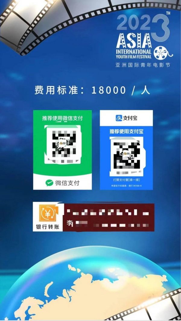 近期,不少青年电影创作者都接到了一个来自“亚洲青年电影节”的组委会邀请,声称他们的作品入围了该影展的竞赛单元。经过调查与走访之后,娱乐资本论拿到了对方的章程,该电影节章程里面明确说明了费用包含的项目,其中酒店费、餐费、物料制作费,还有媒体费和广告费,在章程结尾的最后一页,直接将微信和支付宝付款二维码贴在上面。