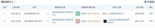 电影节的董事长白穆迪曾经两次被限制高消费,一次是在2021年12月31日,另一次是在2022年9月29日。第一次限制高消费的执行人是三亚红树林度假酒店经营有限公司,据内幕人士透露,是因为海南电影节长期拖欠酒店欠款所致。