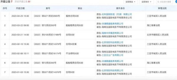 河豚君到天眼查上查询发现,海南岛国际电影节有限责任公司有两家股东,一家是中民文化传媒发展(三亚)有限公司,一家是三亚传媒影视集团有限公司,前一家公司在2021年被执行了股权冻结。2021年11月24日至今,海南岛电影节一共接到了七起民事诉讼案件,均为合同纠纷案件,这里面包括影视公司、会展公司、船务公司、地产公司,甚至还有爱奇艺的子公司爱豆青春文化。