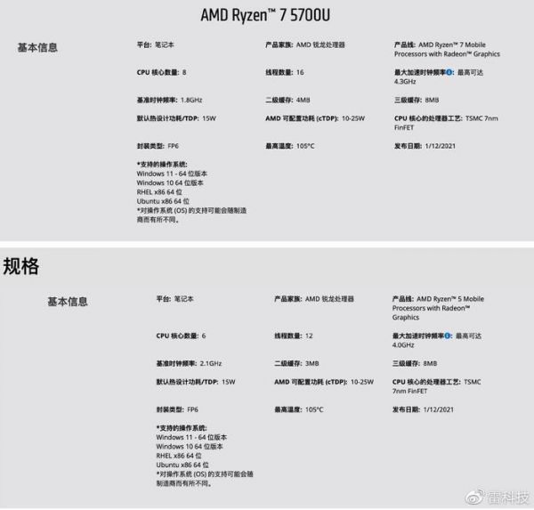要想分清这些U也并非没有办法,AMD的7000系列的命名方式和之前有一点点区别,我们只需看四位数字中的后两位即可。比如20代表的是Zen2架构、台积电6nm制程工艺、RDNA2核显;30代表的是Zen3架构,35则是Zen3+、台积电7nm工艺、VEGA核显;40代表Zen4 Phoenix架构、台积电4nm工艺、RDNA3核显,并以此类推。