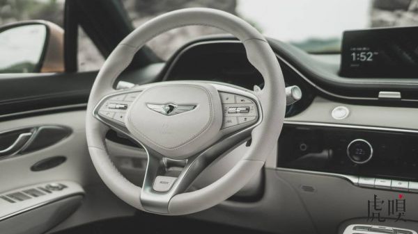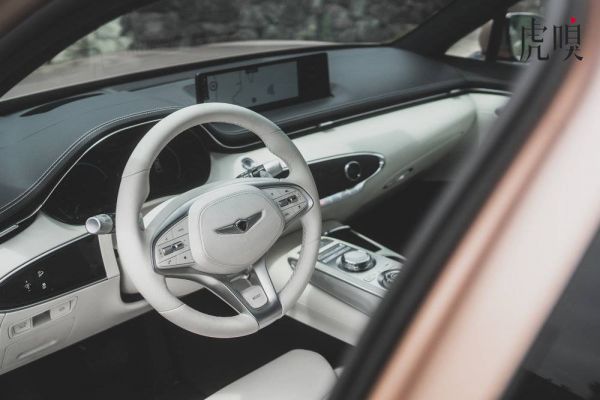 在宏观上做好了设计的同时,微观细节上,GV70纯电也十分到位。标配的三幅方向盘上,真皮包裹的缝线配合拥有干脆反馈的按键,让驾驶员摸上方向盘的一瞬间,就在触觉层面建立了豪华的印象。与此同时,放在今天已属少见的中控台实体按键+遥感旋钮,则用柔和但清晰的反馈提醒你:“这是来自机械豪华时代,对于电动汽车的理解”。