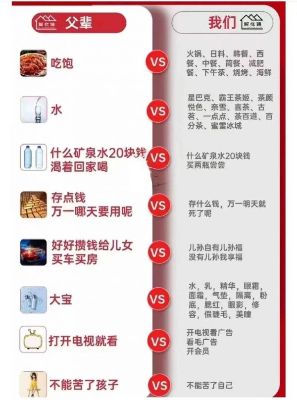 (父辈与我们这一代的消费对比图)