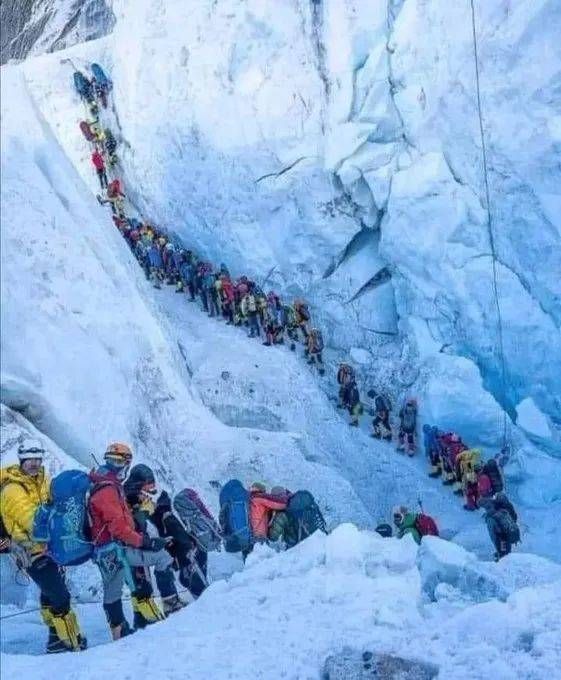 特别是近年来登山者的数量增多,大部分登山者扎堆在同一时间窗口上山,导致登山沿途出现“大堵塞”。海拔8000米以上的“死亡区域”,数百人在缺氧和严寒中排队等候,有的甚至得长达2、3小时,这不仅影响登顶,更会带来安全问题。