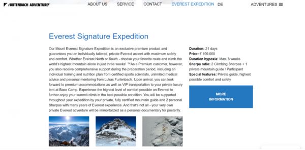 △攀登珠峰费用(图源:Furtenbach旅行社官网)