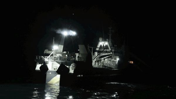 在开灯作业期间,“海尔默汉森”号就跟普通拖网渔船一样收集鱼类。大型网具和沉重的缆绳在冰冷的甲板上拖过巨大的钢辊。一个不小心,研究人员可能就会失足滑下船尾的开放式坡道,被黑暗大海和轰鸣的螺旋桨吞噬。