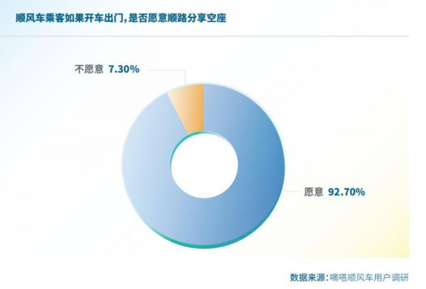 92.7%的受访顺风车乘客表示,如今后开车出门,愿意顺路分享空座。这表明,在持续搭乘顺风车过程中,越来越多乘客的顺路分享空座意识也在逐渐提升;