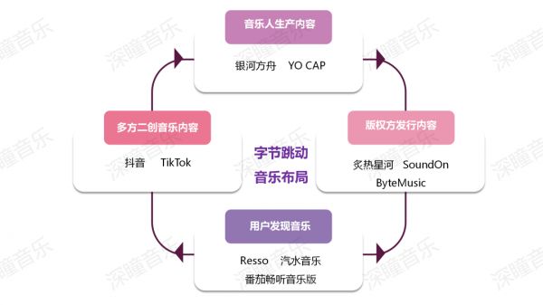 至此,三年时间,字节跳动的音乐布局在理论的逻辑上,已经打通内容产品的“任督二脉”,形成了音乐人生产内容→版权方分发内容→用户发现音乐→多方二创音乐内容→反哺音乐内容生产的闭环。