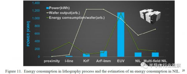 如同前文所述,EUV和high NA EUV光刻可以实现极高的分辨率,但是其能耗令人望而却步,那难道NIL就很省电么?对不起,还真的是很省电!佳能的NIL设备FPA-1200NZ由FPA-1200升级而来,i line光源决定其能耗必然远低于EUV光刻机,略低于ArF浸润式光刻机。