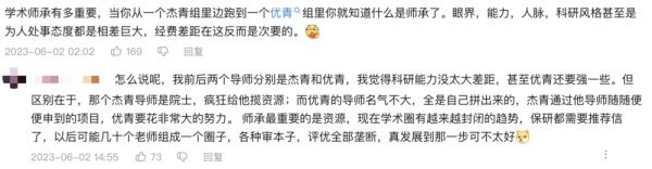 在评论里,出现最多的一个词就是“学阀”。现代科学研究毕竟是一个讲资源和同行评议的地方,如果这些同行,都是我老板的老师呢……