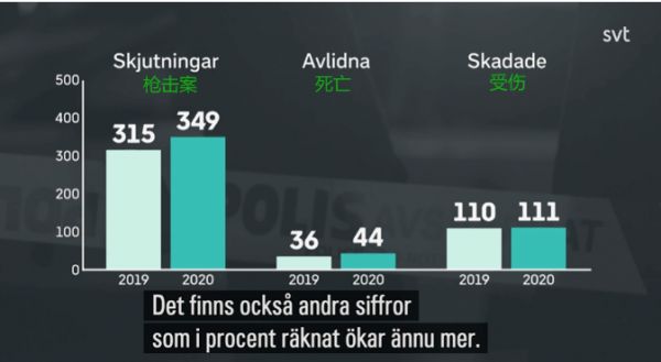 近年来,瑞典枪击案持续增加来源:航行瑞典