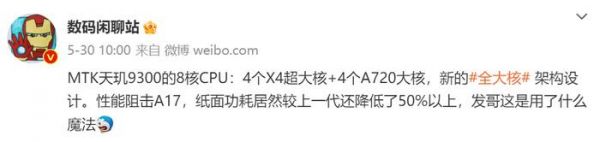 全大核时代来临!天玑9300 八颗CPU都是大核,性能功耗大降50%