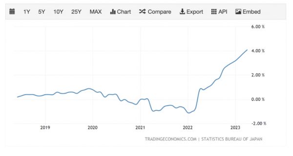 另外,由于目前日本通胀的快速回升,又从另外一个方面冲击劳动人口的实际购买力。