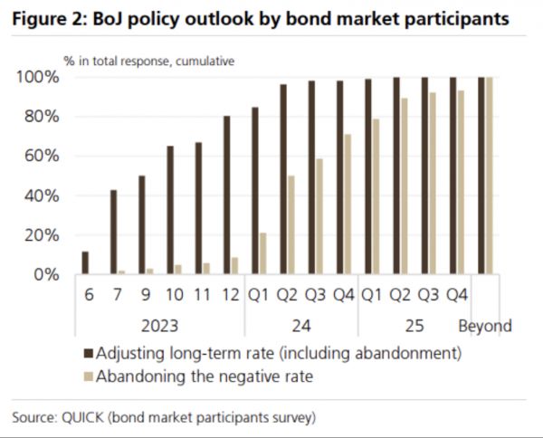 首先,由于通胀上升,特别是核心通胀持续高涨,最终将导致日本央行放弃收益率曲线控制,继而导致日债收益率上升,同时停止或大规模削减QE。