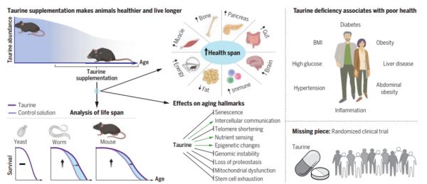 [2] Taurine deficiency as a driver of aging. Science (2023). DOI: http://dx.doi.org/10.1126/science.abn9257