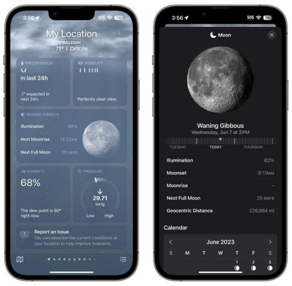 苹果iOS 17 升级天气应用:回顾昨日天气、引入月球信息