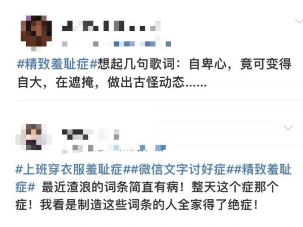 “精致羞耻症”的叫法并不新颖,去年各大平台流行过类似的词“美丽羞耻症”,这样的造词法很大程度上脱胎于英语表达习惯中的“body shame”一词,都是羞耻情绪的衍生。可将其形容为一种“病症”,又加重了“羞耻”一词本就蕴含的负面意涵。