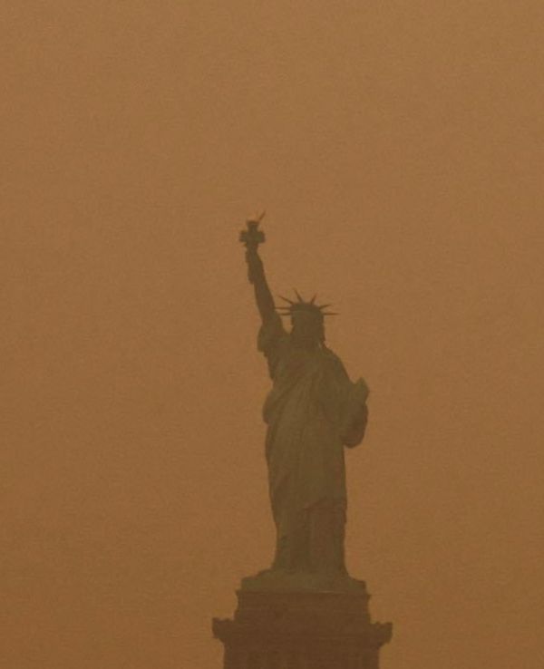 1. 加拿大发生超大规模森林大火,毒烟粉尘南下飘往美国,纽约、华盛顿、费城等美东重要城市陷入“橙色恐怖”,飞机停航、学校停课、赛事取消,城市运行几乎停滞。多地呼吁民众佩戴N95口罩,减少出门。