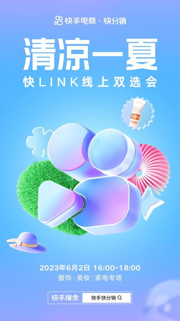 为推动商家与达人实现高效对接,更好地借大促节点实现生意进阶,近日,快手电商快分销首次推出快LINK线上双选会——「清凉一夏」服饰美妆家电专场,在6月2日-6月16日期间,通过“官方直播间+线上撮合广场+社群”的工具组合,以更灵活、开放的方式,为商家和达人搭建连接与交流的桥梁。