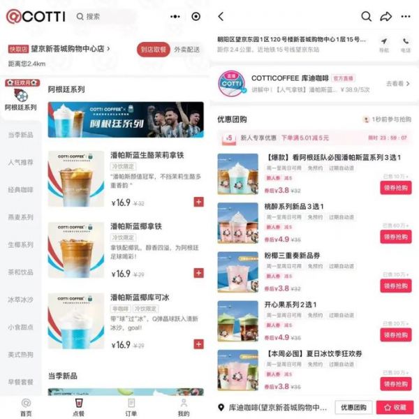 ▲(图源/库迪咖啡小程序和抖音团购菜单)据媒体统计,库迪在抖音上的这一轮投放直指瑞幸,大约从2023年3月开始,同时在线上和线下展开。为了扩大知名度,库迪在平台上通过网红直播间、明星大V等,不间断地进行了从最低0.99元到9.9元不同额度的优惠券发放。