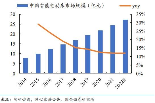 在需求方面,智研咨询数据显示,2021年中国智能床行业的市场规模为24.4亿元,同比增长12.1%,仍处于起步阶段。
