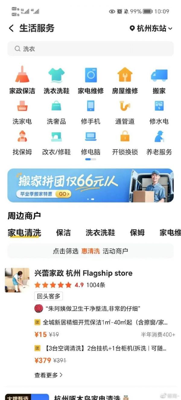与58到家同一时期布局到家业务的美团本地生活似乎早有准备,美团在运营了一段时间的点评到家业务后,也将家政、宝洁、美甲美睫等到家业务悄然收缩,集中主力于餐饮外卖服务上。