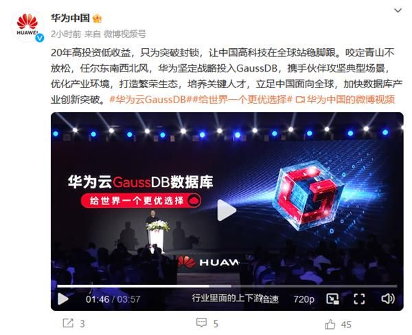 华为补充道:“咬定青山不放松,任尔东南西北风,华为坚定战略投入GaussDB,携手伙伴攻坚典型场景,优化产业环境,打造繁荣生态,培养关键人才,立足中国面向全球,加快数据库产业创新突破。”