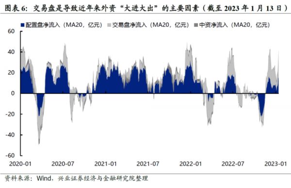 配置型资金去年有两次大规模的流出,一次是3月份俄乌冲突时期,一次是10月以后,其原因就不多说了,而11月到1月,则出现一轮大规模的净流入,这一波资金的性质,一直以来争议较大。