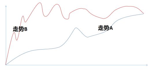 A、B两种走势,起点终点涨幅相同,但走势A,大部分人都能赚钱,而走势B,大部分人都赚不到钱,而出现走势B的市场,通常是长线资金占比较高的市场。