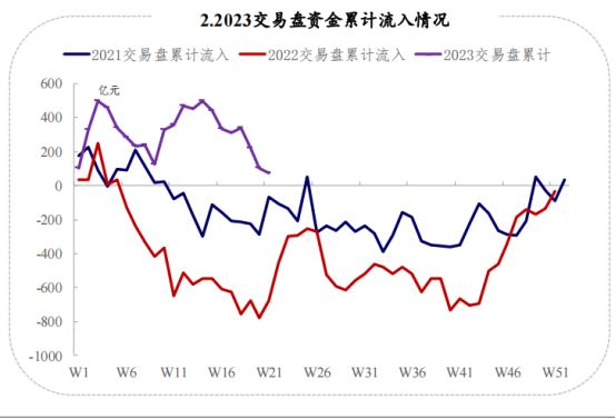从上图看,交易型资金与配置资金的流入方向基本相同 ,但交易型资金会放大波动。