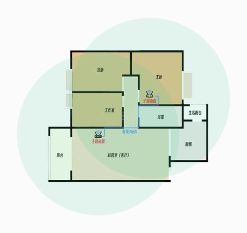对网速和信号要求更高,或需要三个路由器以上才能覆盖的环境,建议配置同一品牌的路由器进行Mesh组网,配置更加灵活,增减起路由器来很方便;