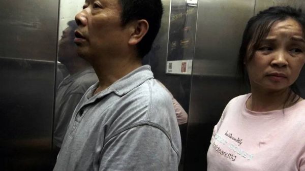 图 | 章荣高和叶丽凤在去往直播室的电梯里