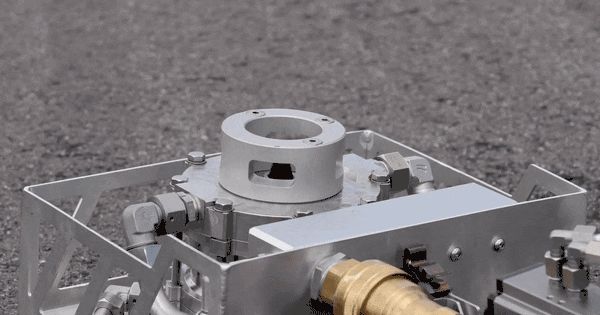 它利用一个超高压喷嘴,喷出超高压的水和腐蚀性材料,先浇灭车身主要明火,再超高压切割开电池包,直接给里面的电池降温,给电池灭火。