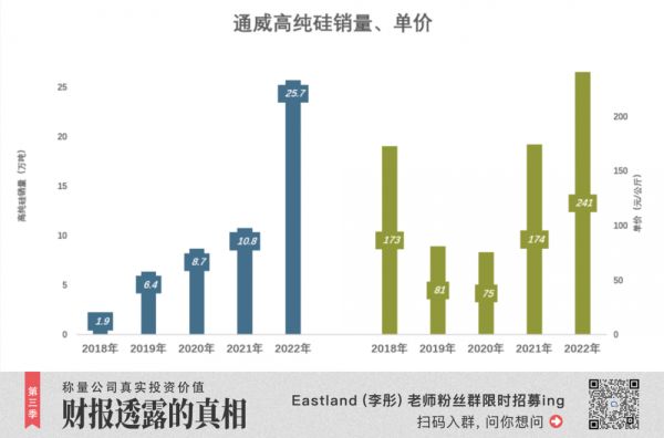 2022年,通威全年硅料销量均价超过240元/公斤(即24万元/吨),较2021年上涨38.3%。
