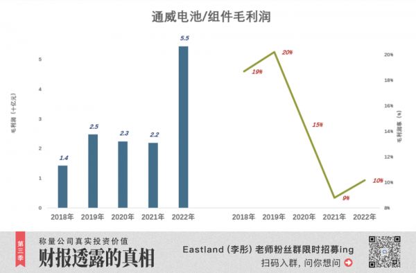 2022年,通威“冒天下之大不韪”向下一体化。2023年,组件业务毛利润或可提高一个数量级。#堤内损失堤外补#