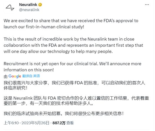 对于FDA的这一决定,业界其实颇为惊讶,因为路透社三月份刚爆出来FDA去年毙掉了Neuralink的首次临床试验申请。但过了不到一年,Neuralink就卷土重来提交补充材料,最终获得FDA许可。