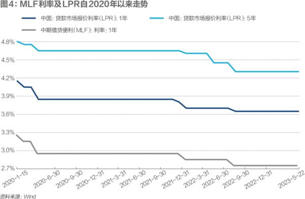 2022年8月央行超预期降息10BP以来,MLF利率连续十个月维持在2.75%,LPR则保持未变。今年3月,央行进一步降准0.25个百分点,释放长期资金超5000亿元。此外,央行持续通过各类结构性货币政策工具提供流动性。