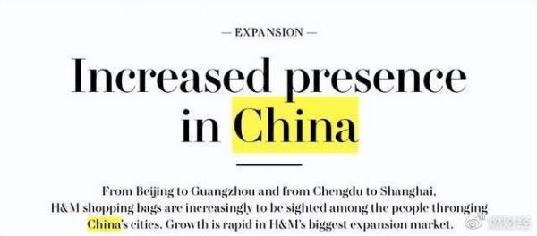 2013年,H&M集团财报上关于店铺扩张的说明页,大大地写着“China”,当年,H&M在成都、上海等城市销量的迅速上升,让中国成为整个集团增长最快的市场之一。