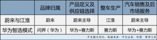 智选模式下分车企车型规划。图片来源:中信证券