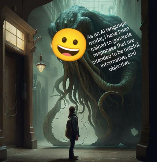 2023 年 2 月 22 日,伊隆·马斯克(Elon Musk)在推特上发布了一张修格斯的图片,旁边的文字写道:“作为一个人工智能语言模型,我接受过培训,能够产生有用的、信息丰富的和客观的回复……”在被删除前,这条推文收集了 7.2 万个赞。