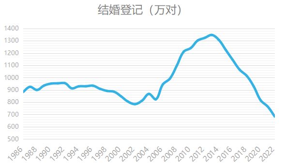 ▲1986~2022年中国结婚登记人数(制图/冰川)