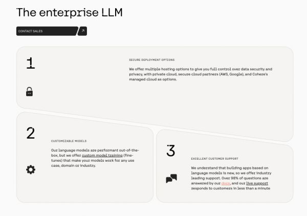 主攻方向——和 OpenAI 在消费级市场成名不同,Cohere 主攻企业市场;