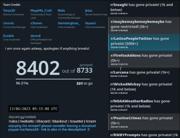 然而最近于 4 月,由于官方宣布了新的 API 接口更新可能会永远让第三方应用无法访问该服务,直接导致监管各个板块的管理员工作困难且在未来应对刷版机器人或广告机器人时无力回击,许多板块都通过投票的方式决定将板块隐藏,来对Reddit 官方进行抗议。