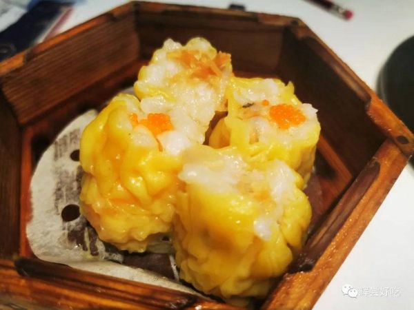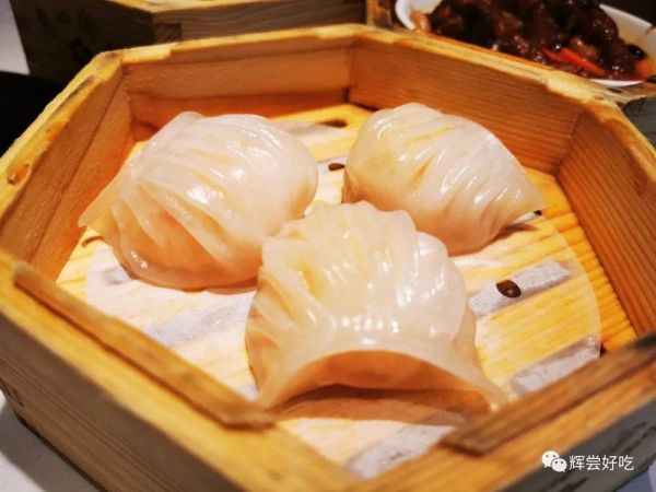 虾饺通透中显现出虾肉的浅红色,12道漂流的褶子,如同建筑里的钢架结构,拱出一道漂亮的弧形,虾饺因此坚挺饱满,皮是软滑带爽,馅是爽中有鲜。