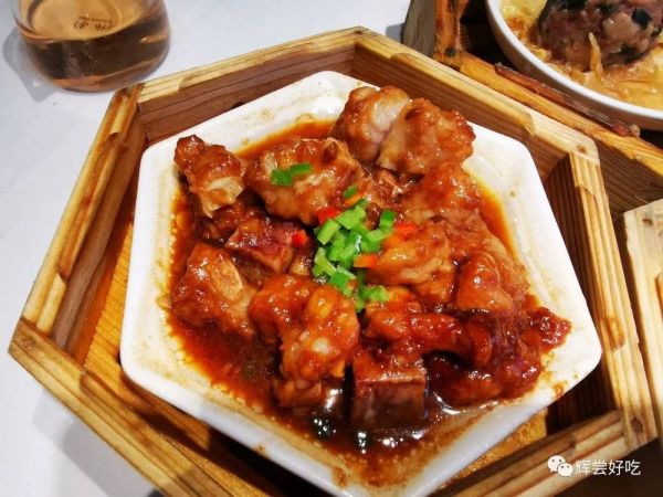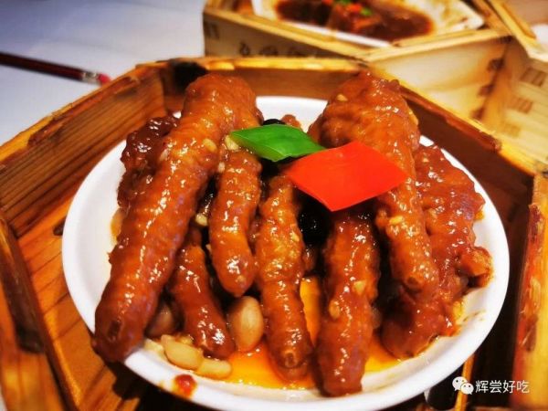 我最喜欢的早点是豉汁凤爪,广州酒家的更丰富,名曰八达酱皇豉椒凤爪。将鸡脚焯水,然后油炸,再泡在水中,形成起皱的虎皮,使鸡脚的空隙增大,加上豉汁,吸足酱汁的鸡脚再上笼蒸,这样做出来的豉汁凤爪,红香酥软,一吮即脱骨,入味三分,连啃骨头也是莫大的乐趣。