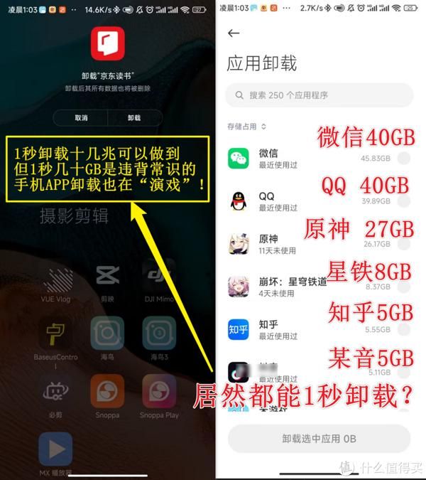 表面上看,手机存储芯片的读写速度根本没这么快,但事实上,有些卸载操作并不是我们理解的那样对文件数据逐一覆写,手机和电脑删除、卸载软件的原理不尽相同,删除快慢也就很不一样了。