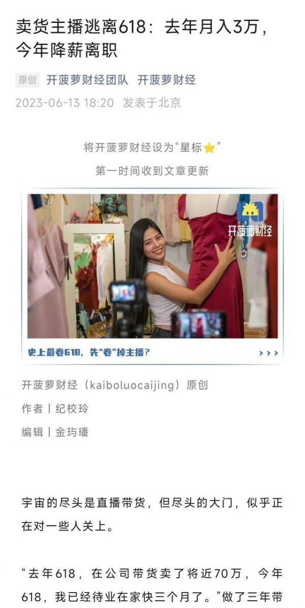 卖货主播逃离618:去年月入3万,今年降薪离职