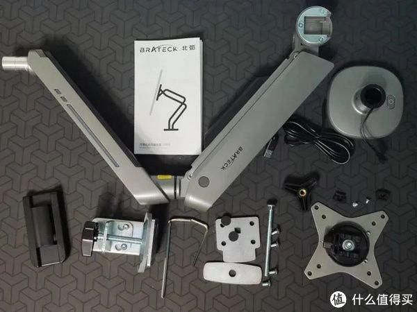 支架不仅在设计功能上十分用心,外形也更加精致,支架全身为金属铝材质,纳多灰配色很有科技感,支架臂采用了一体式的设计,上下臂是不可拆卸的。安装中有一点需要注意,剪开机械臂的捆扎带要小心弹到自己。